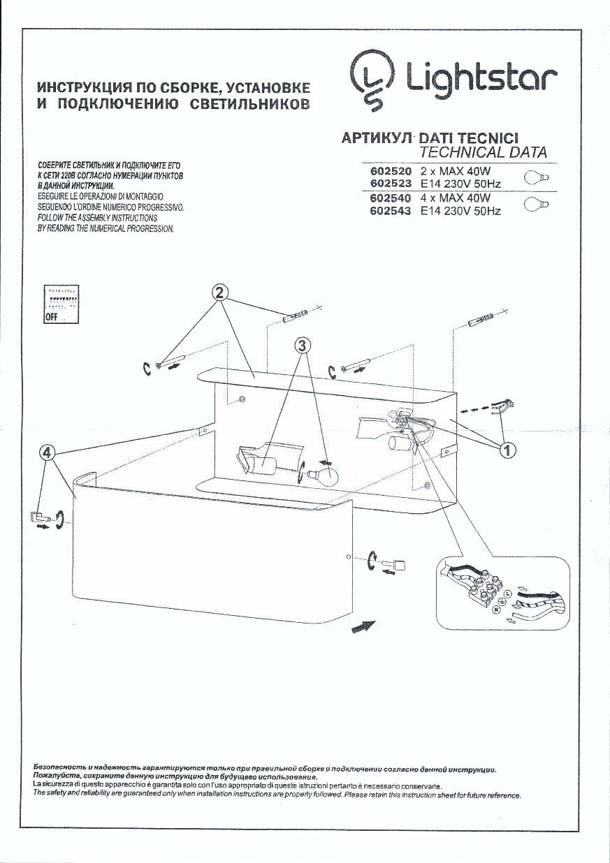 Lightstar (452/A/P SCAT) Бра MURANO 4х40W E14 Cristallo, 602540