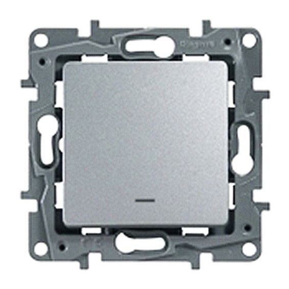 Выключатель 1-клавишный Legrand QUTEO-ETIKA, с подсветкой, скрытый монтаж, алюминий, 672403